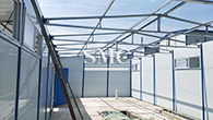 The core material of color steel rock wool sandwich panel is made of basalt and other natural ores as the main raw materials, which are melted into fibers at high temperature, added with appropriate amount of binder, and cured and processed. It is a new type of fireproof board with the strongest fire resistance in the same kind (sandwich panel series).