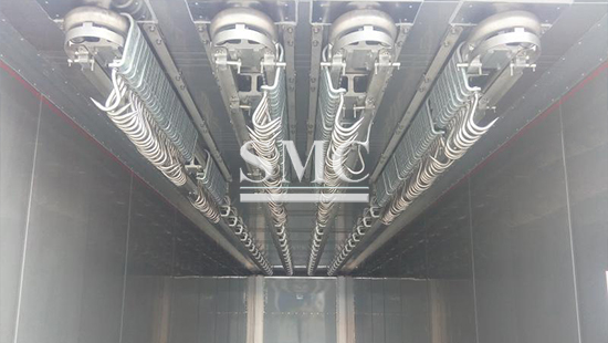 • Unique meat hanging system equipped with work rail and storage rail track.