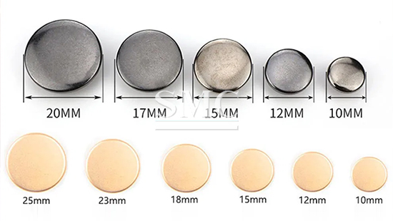 Non-magnetic steel buttons on the market can replace brass buttons. They are usually available in various shapes, sizes, and surface treatments, and can be used for jeans, jackets, and other clothing.