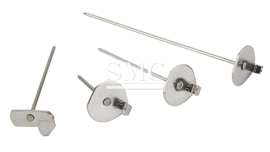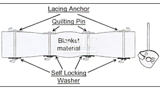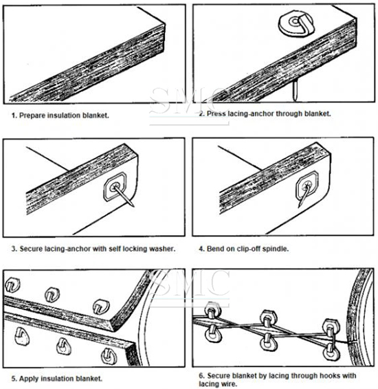 Lacing Anchors is a type of insulation fastener that is used to secure insulation jacket to the areas it insulates, we need to push the lacing anchors through the front of insulation jacket during installation, on the reverse side of insulation jacket, use a self locking washer to lock the lacing anchors. Finally, using the tie wire to tie the hooks on the lacing anchors so that the insulation jackets are fixed.